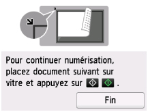 Si vous souhaitez poursuivre la numérisation, chargez le document original sur la vitre d'exposition et commencez la numérisation.
