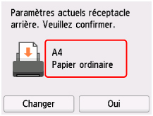 Si le format de papier et le type de support sur l'écran tactile correspondent au format et au type de papier chargé dans le réceptacle arrière, sélectionnez Oui.