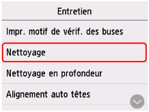 N'effectuez aucune autre opération avant la fin du nettoyage de la tête d'impression par l'imprimante. L'opération dure environ 1 minute.