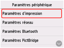 Paramètres périphérique.L'écran Paramètres périphérique s'affiche.