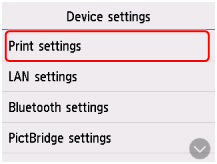 Postavke uređaja (Device settings).Prikazuje se zaslon Postavke uređaja (Device settings).