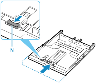 Als de cassette is uitgetrokken, wordt het automatisch groter. Als u de uitgetrokken cassette korter wilt maken, duwt u deze naar binnen terwijl u aan de hendel (N) trekt.