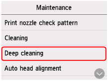 Se a qualidade da impressão não melhorar após a limpeza padrão da cabeça de impressão, faça a limpeza profunda da cabeça de impressão. A limpeza profunda da cabeça de impressão consome mais tinta que a limpeza padrão da cabeça de impressão; por isso, limpe profundamente a cabeça de impressão somente quando for necessário.