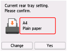 Dacă dimensiunea de pagină de pe ecranul senzitiv corespunde cu dimensiunea hârtiei încărcate în tava din spate, selectaţi Da (Yes).