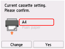 Om inte, väljer du Byt (Change) för att ändra inställningen utifrån storleken på det påfyllda papperet.