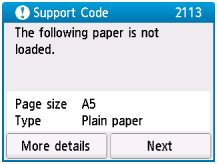 När du börjar skriva ut/kopiera visas ett meddelande, och pappersinställningarna som angivits för utskrift/kopiering visas under meddelandet.
