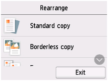 Du kan ändra visningsordningen i kopieringsmenyn.