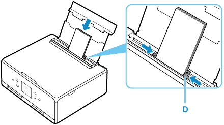 Justera höger pappersledare (D) mot kuvertets båda sidor.