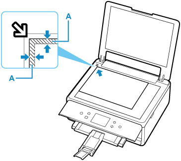 Skrivaren kan inte skanna det randiga området (A) (1 mm (0,04 tum) från kanterna på skivans glas).