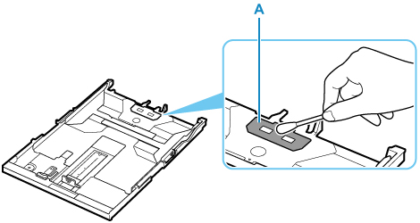 Rengör dynan (A) i sidled med en fuktig bomullstops.
