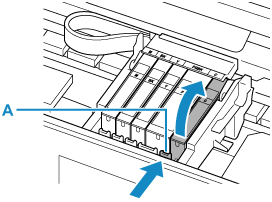 Työnnä uloketta (A) ja poista mustesäiliö nostamalla se.