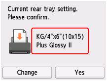 Om inte, väljer du Byt (Change) för att ändra inställningarna utifrån storlek och typ för det påfyllda papperet.