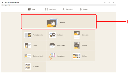 I Start-menyn väljer du (Alla appar (All apps) >) Canon Utilities > Easy-PhotoPrint Editor.