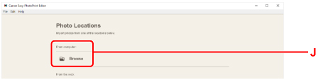 11. Klicka på Bläddra (Browse) (J) i Från dator: (From computer:) och välj mappen med foton som du vill skriva ut.