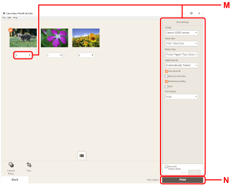 13. Ange antal kopior och andra alternativ under Utskriftsinställningar (Print Settings) (M).