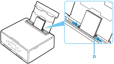 5. Justera höger pappersledare (D) mot pappersbuntens båda sidor.