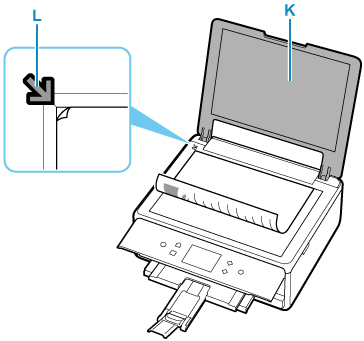 13. Placera originalet MED DEN SIDA SOM SKA KOPIERAS VÄND NEDÅT och placera det mot justeringsmärket (L).