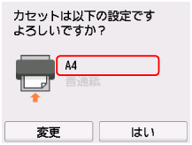 表示された用紙のサイズが、カセットにセットした用紙と同じであれば[はい]を選ぶ