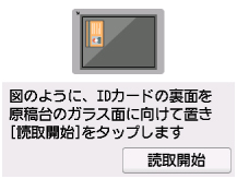 表示される案内に従ってIDカードの裏面を下に向けて原稿台にセットし、[読取開始]を選ぶ