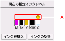 [推定インクレベル]を選ぶインクの残量についてお知らせがあるときは、図のAの部分にマークが表示されます。