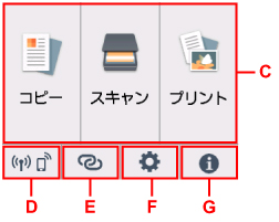 プリンターの操作パネルからコピーやスキャンなどを行うときに選びます。基本メニューを選んだあと、それぞれ詳細なメニューが表示されます。