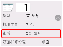 也可以通过选择复印待机屏幕上的布局直接选择2合1复印。