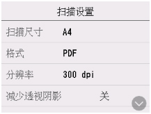显示扫描待机屏幕时,选择扫描设置以选择设置项目。 滑动以显示设置项目,然后选择设置项目以显示设置。 选择以指定设置。
