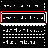 本節以指定擴展量(Amount of extension)的步驟為例,說明在裝置設定(Device settings)螢幕中變更設定的步驟。