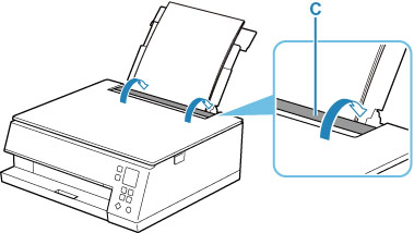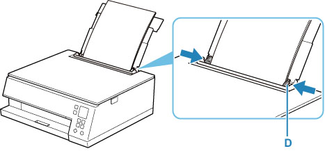 Libistage mõlema paberijuhiku avamiseks parempoolset paberijuhikut (D) .