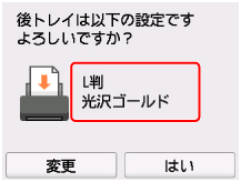 表示された用紙のサイズと種類が、後トレイにセットした用紙と同じであれば、[はい]を選ぶ