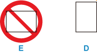 قم دائمًا بتحميل الورق بالاتجاه الطولي (D). يمكن أن يؤدي تحميل الورق بالاتجاه العرضي (E) إلى انحشار الورق.