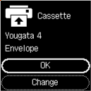 Po vložení kazety do tiskárny se na displeji LCD otevře obrazovka s potvrzením nastavení papíru v kazetě.