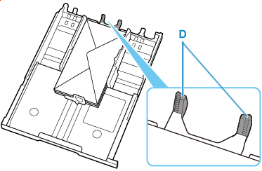 Pokud se papír nebude dotýkat výčnělku (D), nemusí proběhnout jeho správné vložení do tiskárny.