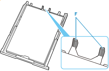 Pokud se papír nebude dotýkat výčnělku (F), nemusí proběhnout jeho správné vložení do tiskárny.