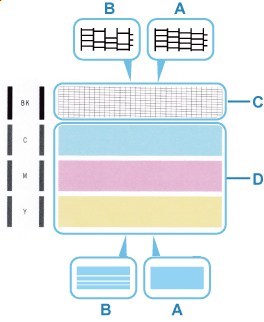 تحقق مما إذا كانت هناك سطور مفقودة في النموذج C أو خطوط أفقية في النموذج D.