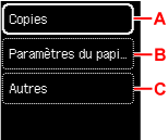 B: Vous pouvez vérifiez le format et le type de papier actuellement définis.