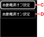 C:操作がされなかった場合やパソコンから印刷データが送られなかった場合に、自動的にプリンターの電源を切るまでの時間を設定します。