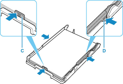 Schieben Sie die rechte Papierführung (D), um sie am Papierstapel auszurichten.