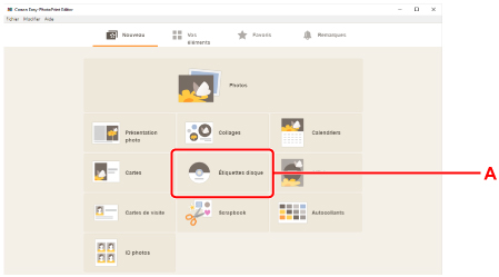 2. Cliquez sur l'icône Étiquettes disque (A).