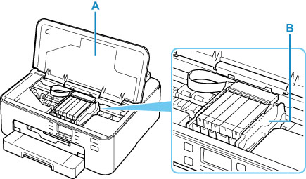 - Åpne for å skifte ut en blekktank eller fjerne fastkjørt papir inne i skriveren.