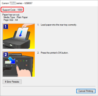 Tõrke ilmnemisel kuvatakse arvutis teade või printeril tõrkekood. Mõne tõrke puhul kuvatakse arvutis tugikood (tõrke number).