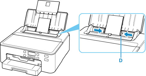 5. Gurajte desnu vodilicu papira (D) kako biste je poravnali s obje strane snopa papira.