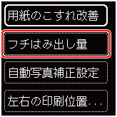 ここでは、フチはみ出し量を設定する操作を例に、本体設定画面の設定変更の手順について説明します。