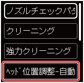 [ヘッド位置調整値を印刷]を選ぶと、現在の設定を印刷して確認することができます。