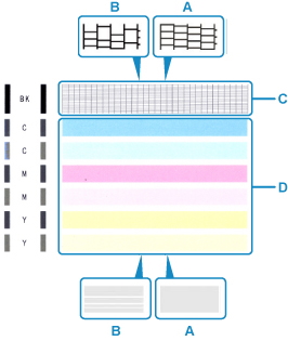 تحقق مما إذا كان هناك سطور مفقودة في النموذج C أو خطوط بيضاء أفقية في النموذج D.