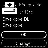 Si le format de papier et le type de support indiqués sur l'écran LCD correspondent au format et au type des enveloppes chargées dans le réceptacle arrière, sélectionnez OK.