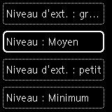 Cette section présente la procédure à suivre pour modifier les paramètres de l'écran Paramètres périphérique, les étapes permettant de spécifier Niveau d'extension étant utilisées à titre d'exemple.