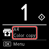 Για να αλλάξετε τη θέση του χαρτιού, τη λειτουργία χρωμάτων και άλλες ρυθμίσεις, πατήστε το κουμπί OK. Επιλέξτε Ρυθμίσεις αντιγραφής (Copy settings) για να εμφανιστεί το επιθυμητό στοιχείο ρύθμισης.