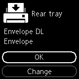 Εάν το μέγεθος σελίδας και ο τύπος μέσου που εμφανίζονται στην οθόνη LCD αντιστοιχούν στο μέγεθος και τον τύπο των φακέλων που έχετε τοποθετήσει στην πίσω θήκη, επιλέξτε OK.