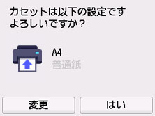 表示された用紙のサイズが、カセットにセットした用紙と同じであれば、[はい]を選びます。